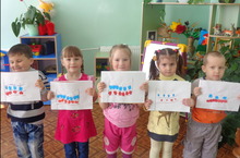 "Россия-зур дәүләт". 02.05.2014 Бу атнада балалар белән танып белү эшчәнлегендә Россия башкаласы Мәскәү турында сөйләштек.Танылган урыннар тәшерелгән рәсемнәр карадык. Иҗади сәнгать шөгылендә Россия әләмен чәчәкләр белән бизәдек.