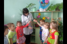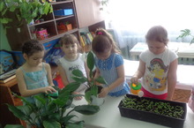 "Табигать почмагында". 07.04.2014 Бүген без зурлар төркемендә тәрбияләнүче балалар белән табигать почмагында бергәләп утырткан чәчәк үсентеләренә су сиптек,гөлләрнең төпләрен йомшарттык, гөл яфракларының тузаннарын сөрттек.