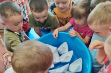 Балалар су өстендә йөзүче әйберләрне йөздереп карадылар.Авыр әйберләрнең ни өчен батуын аңлатылды.
