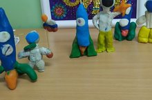 Кечкенәләр төркемендә ябыштыру шөгеле үтте. Космонавтика көне һәм космос турында әңгәмә үткәрелде. Беренче галәмгә алучы Юрий Гагарин турында слайдлар каралды. Балалар төрле геометрик фигуралардан үзенчәлекле композиция ясарга өйрәнделәр.