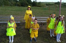 Бүген авылыбызда районкүләм үткәрелгән "Пчелотуй" бәйрәмендә "Бал кортлары" биюе башкардык.