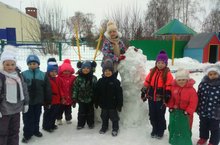 Бүген балаларыбыз белән бергәләп саф һавада Кар бабай ясадык.