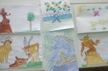 Бүген без балалар белән Габдулла Тукайның әкиятләренә сәяхәт ясадык. Бергәләп иҗади сәнгать -рәсем шөгылендә әкият геройларын ясадык.