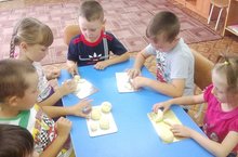 Бүген без мәктәпкә әзерлек төркемендә тәрбияләнүче балалар белән иҗади сәнгать-төзү эшчәнлегендә тозлы камырдан җиләк-җимешләр әвәләп ясадык.