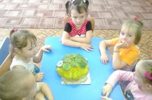 Бүген бакчабызның зурлар төркемендә тәрбияләнүче балалар янына "кунакка" ташбака килде. Без җыеп алынган көзге уңышлардан файдаланып,иҗади сәнгать-төзү эшчәнлегебездә патиссон һәм бәрәңгедән ташбака ясадык.