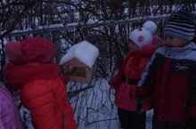 "Җимнәр сибәм кошларга". 12.12.2014 Бу атнада бакчабызда балалар белән бездә кышлаучы кошлар турында сөйләштек. Балаларның кошлар турында белемнәре баетылды.Балаларда кошларга сакчыл караш, кайгыртучанлык тәрбиясе бирү максатыннан, өйгә эш итеп әти-әниләре ярдәмендә җимлек ясап алып килергә кушылган иде.Бүген бакча тирәли экскурсия ясап, балалар белән кошларга җимлекләр куйдык һәм кошларны сыйланырга ярма сиптек.