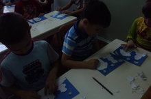 "Ак ефктәй кыш килде". 03.12.2014 Ап-ак тун киеп кыш килде, Яфрак-яфрак кар ява. Без дә кидек җылы туннар, Куркытмый салкын һава. Чормадан сикереп төште Чаңгылар һәм чаналар. Бүген бакчабызның мәктәпкә әзерлек һәм уртанчылар төркемендә тәрбияләнүче балалар белән иҗади сәнгать-кисеп ябыштыру шөгылендә ак кәгазьне йомарладык һәм шуны ертып алып, кар күмеп киткән йорт ясадык.Балаларның төзү композицияләрен үстердек.