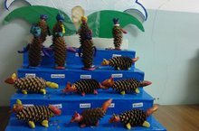 "Кыргый хайваннар бездә кунакта" 17.12.2014 Бу атнада белем бирү эшчәнлегебез кыргый хайваннарны өйрәнүгә багышланды. Без балалар белән призентация ярдәмендә зоопаркка "сәяхәт ясадык". Балаларга зоопаркта яшәүче хайваннарның нәрсә белән туклануы, аларның анда ничек яшәүләре аңлатылды. Иҗади сәнгать-кул эше шөгылендә балалар белән табигый материал- күркәдән кыргый хайваннар ясарга өйрәндек.