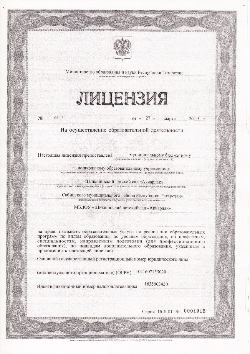 Короткое название: МБДОУ «Шикшинский детский сад «Акчарлак» Сабинского муниципального района РТ»