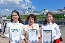 18 нче май көнне мәктәбебезнең сәләтле укучылары,татар теле фәненнән олимпиадада җиңү яулаган 7класс укучысы Зайнагиева Азалия һәм 9 класс укучысы Гыйбадуллина Камилә,татар теле укытучысы Зөлфия Фоат кызы белән Пирамидада үткән тантанада катнаштылар.Бәйрәмнән кутәренке күңел белән,яңа эшлэргә рухланып кайттылар.