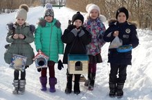 Табигатьтә салкын кыш. Кошларга ярдәм итү максатыннан,1нче сыйныф укучылары әти-әниләр белән берлектә җимлекләр ясадылар. Мәктәп янындагы агачларга элеп, азык салып куйгач, түземсезләнеп җимлекләргә кошлар килгәнен күзәттеләр.