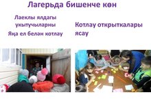 Лагерьның бишенче көнендә балалар котлау открыткалары ясап, лаеклы ялдагы укытучыларны Яңа ел белән котлап кайттылар. "Җырлыйк әле" караоке уенында татар халык җырларын башкардылар. Төшке аштан сон саф һавада уйнадылар.