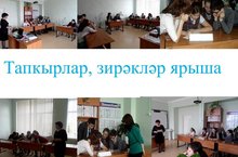 Бүген Габдулла Тукайның 130 еллыгына багышлап, 7-8 класс укучылары арасында "Булсаң зирәк-әйт тизрәк" интеллектуаль уены үтте. Китапханәче Махмутова Г.М. укучыларны зирәклектә, тапкырлыкта сынады.