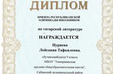 Нуриева Лейсания Тафкилевна - призер республиканской олимпиады по татарской литературе 15.02.2016