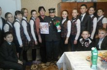 19 январь көнне Сугыш ветераны Насыйбуллин Хәсиятулла Насыйбулла улының 90 яшьлек юбилей кичәсе булды. Аны котлап мәктәп коллективы исеменнән 7 класс укучылары һәм класс җитәкчеләре Фальванова Айгөл Фидаилевна бардылар. Алар Хәсиятулла абыйга кулдан эшләнгән чәчәкләр, открытка бүләк иттеләр. Шулай ук ишегалдында карларын көрәп ярдәм итеп киттеләр.