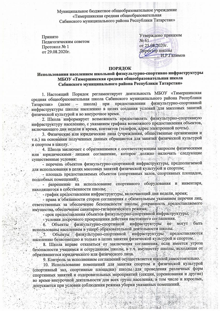 Порядок использования населением школьной физкультурно-спортивно инфраструктуры
