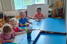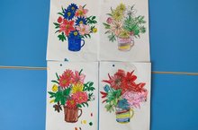 Көн дәвамында балалар бик матур итеп раскраскалар буйыйлар. Бу фотода әниләренә чәчәк бәйләмнәре.
