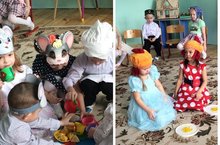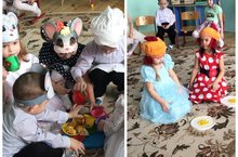 Әниләргә узебезнең осталыкны " Чукмар белән Тукмар" һәм " Башак" әкиятен сәхнәләштереп курсәттек..Бәйрәм белән котладык.