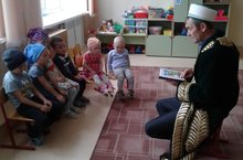 9 сентябрь көнне бакчабызда Корбан ашы булды. Авылыбыз имамы Муллагалиев Илнур абыйлары сөйләгән угет, нәсыйхәтләрен балалар бик бирелеп, яратып, кызыксынып тыңладылар. Соныннан бик тәмле Корбан ашы ашадылар.