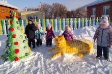 Әтиләр ярдәме белән бакчабыз каршына матур кар сыннары ясап куйдык.