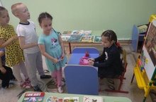 Китап белән үз-үзеңне тоту кагыйдәләрен кабатладык. Китапның кайдан һәм ничек барлыкка килгәнен өйрәндек. "Китап кибете" уенын уйнадык.