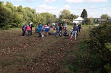 Мәктәбебез бакчасында ел саен укучыларны ел буе ашатырлык күләмдә бәрәңге үстерелә. Бүген кучылар, укытучылар, техник хезмәткәрләр ярдәме белән әлеге уңышны җыеп алдык.