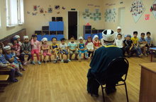 Бүген бакчабызга Юлбат урта мәктәбеннән 4 нче сыйныф укучылары Рәйхана Хәнәфиновна җитәкчелегендә куннакка килделәр.Алар балаларга Ләбиб Леронның "Чәпәләй һәм тәпәләй маҗаралары" исемле әкият-пьесасын сәхнәләштереп күрсәттеләр.Укучылар рольләрне шундый оста башкардылар,әкият бик матур һәм күңелле булды.Балаларга һәм аларның укытучыларына зур рәхмәтебезне җиткерәбез укуларында,эшләрендә уңышлар телибез.Тагын килүләрен көтеп калабыз.