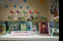 "Ил сакчылары" атналыгында әтиләргә багышлап "Минем әти солдат булган" дигән стенд ясадык.