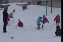 Балалар кышның соңгы карында рәхәтләнеп уйныйлар.