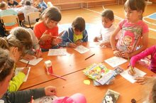 Көндәгечә укучыларны кабул итеп физзарядка ясаганнан соң лагерьдагы балалар белән төрле чаралар оештырылды. Ял һәм сәламәтләндерү лагерында физика атналыгы кысаларында физика укытучысы Хәсәнова М.М. тарафыннан "Безнең бабаларыбыз ризыкны ничек саклаган?" дигән темага әңгәмә үткәрелде. Аннары Леопольдка кунакка барып спорт сәгатендә, "Әйдәгез дус булып яшик" дигән темага рәсем конкурсында катнаштылар. Ә хезмәт һәм ял лагеренда бакчада эшләү, дару үләннәре җыю оештырылды.