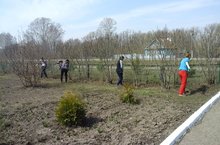 Сегодня в школе прошёл субботник. Все учащиеся и учителя приняли активное участие. Очищены от прошлогодней листвы и мусора пришкольный сад, стадион, вся пришкольная территория.