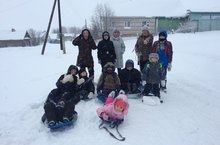 Учащиеся школы из сел Большие Нырты и Завод Нырты встретились в 6 вечера у школы, чтобы покататься и вместе провести последние дни зимних каникул. Кто-то катался с горки на ледянках а кто-то прошелся на лыжах.