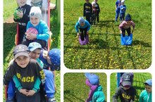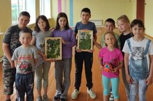 Пятый день пришкольного лагеря "Солнышко" - День леса. Утро началось с поднятием государственных флагов и утренней зарядки на свежем воздухе. Также составляли композиции из природных материалов и играли в подвижные игры.