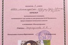 Сегодня, 11 апреля 2022 года, в Сармановской гимназии прошел конкурс среди учащихся начальных классов посвященный 140летию со дня рождения поэта К. И. Чуковского. Ученики 4 класса нашей школы (кл. руководитель Загретдинова Ф.Ф.) выступили и стали призерами в номинации "Инсценировка". Выступая на "большой" сцене дети получили удовольствие и огромный заряд бодрости.