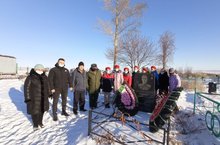 Юнармейцы МБОУ "Александровская ООШ" совместно с начальником военного комиссариата Гасанова Д.Г. возложили венки на могилу Героя Советского Союза Казакова А.А.