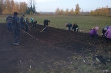 Өлкән сыйныф укучылары узган атнада бакчада эшләделәр.Алар сөрелгән җирне тырмалап түтәлләр ясадылар, сарымсак утырттылар.