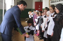 1 нче сыйныф укучыларына юлларда дөрес йөрү буенча ярдәмлек һәм беләзек тапшырылды.