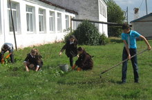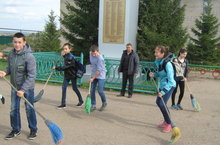 Мәктәп укучылары һәйкәлне һәм аның тирәләрен чистарттылар.