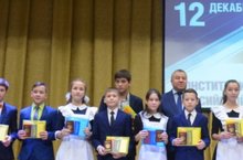 В день празднования 25-летия Конституции в районном Доме культуры состоялось торжественное вручение паспортов юным гражданам Российской Федерации. Свой первый паспорт в этот день получил и наш ученик Гайнутдинов Г./Конституциянең 25-еллыгын билгеләп үткән көнне район Мәдәният йортында Россия Федерациясенең яшь гражданнарына тантаналы рәвештә паспортлар тапшырылды.Безнең мәктәп укучысы Г.Гайнетдинов та бу көнне беренче тапкыр паспорт алды.