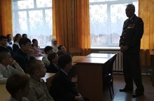 Начальник отдела призывников Сармановского рай.военкомата Хадиуллин Ленар Хамбалович в школе провел классный час, посвященный Великой Отечественной войне/Сарман районы военкоматының хәрби хезмәткә чакыру бүлеге җитәкчесе Хадиуллин Ленар Хәмбәл улы укучылар белән очрашты һәм Бөек Ватан сугышына багышланган сыйныф сәгате уздырды. 07.05.2018