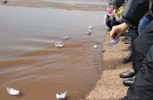 Ребята с учителями ходили смотреть на половодье/Укучылар укытучылар белән берлектә ташу акканын карарга бардылар, теләкләр теләп, кәгазь көймәләр йөздерделәр. 11.04.2018