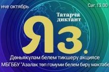 Всемирная акция проверки знаний “Татарча диктант”. 14.10.2023 С 13 по 15 октября 2023 года проходила Всемирная акция проверки знаний “Татарча диктант”. Акция направлена на объединение татар, проживающих по всему миру, повышение интереса к владению литературным татарским языком, проверку орфографических и грамматических ошибок, привитие любви к татарскому языку. 14 октября наша школа также присоединилась к этой акции. Все ученики, учителя МБОУ "Азалаковская ООШ" активно участвовали в этой акции.