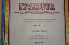 Фирүзә -призер! 07.11.2017 Укучыбыз Фирүзә " Билет в будущее" конкурсында район турында җиңеп призер булды.