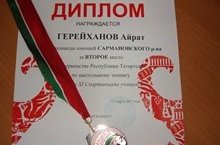 Айрат җиңүче! 06.03.2017 Укучыбыз Гарайханов республика күләмендә уздырылган өстәл теннисы ярышларында катнашып, 2 нче урынны алып кайтты.Аны җиңүләре белән котлыйбыз.