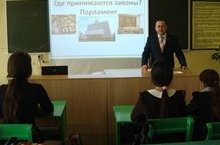Депутат белән очрашу 12.02.2016 Мәктәптә Парламент дәресләре үтте.Дәресне тарих укытучысы Каримова оештырды.Дәрестә авыл җирлеге башлыгы Габделгазизов катнашты.