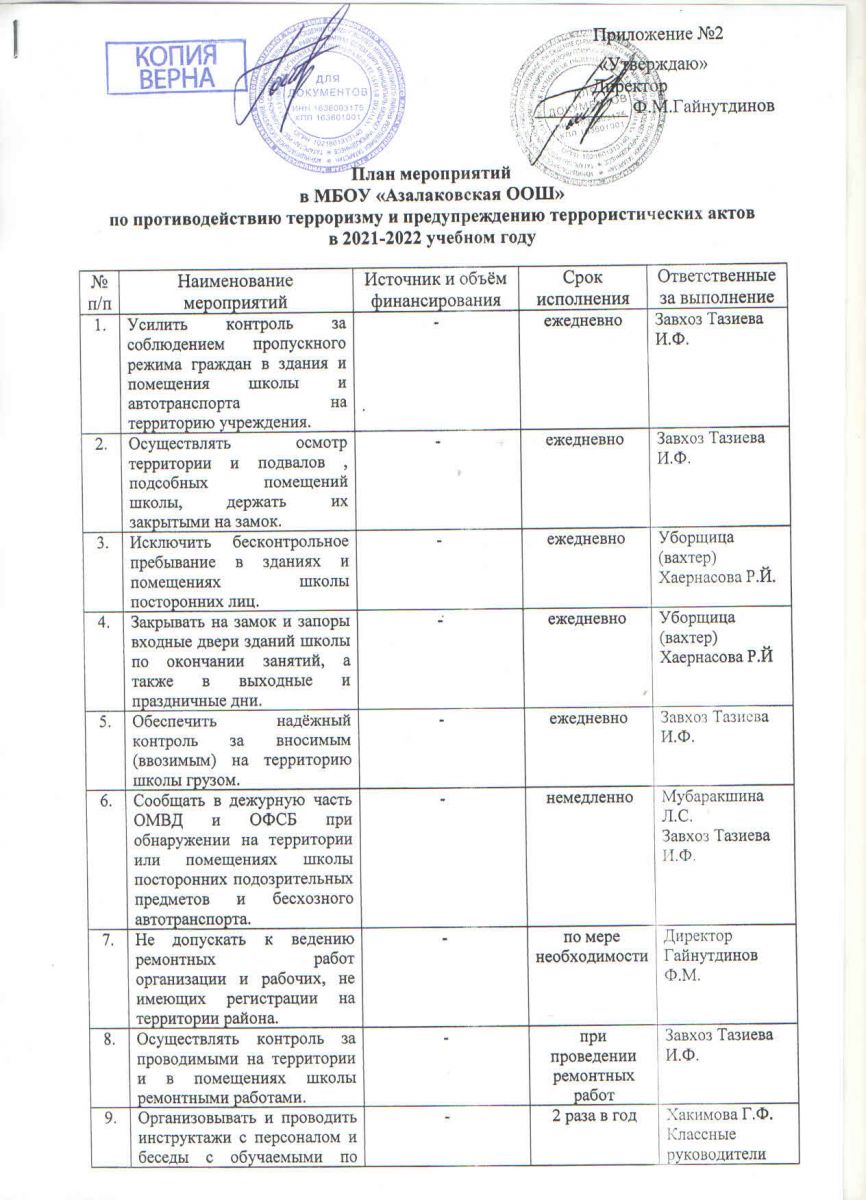 План мероприятий по противодействию терроризму и экстремизму 2021 - 2022 учебный год