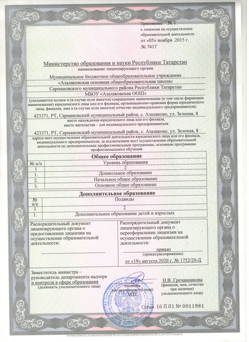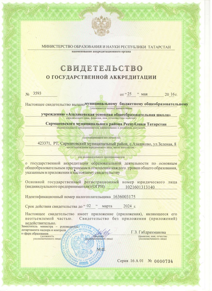 Муниципальное бюджетное общеобразовательное учреждение «Азалаковская основная общеобразовательная школа» Сармановского муниципального района Республики Татарстан / Татарстан Республикасы Сарман муниципаль районы муниципаль бюджет гомуми белем бирү учреждениесе "Азалак төп гомуми белем бирү мәктәбе"