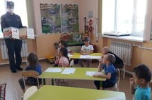 Безнең бакчабызда янгынга каршы хезмәт күрсәтү отрядының Зур Нөркәй авылын саклау буенча пост янгын сүндерүчесе Ахметшин Динар Ришат улы булып китте. Ул балаларга янгын куркынычсызлык кагыйдәләрен үтәргә, янгын чыккан очракта өйдә үзләрен ничек тотарга, ут белән уйнамаска кирәклеген искәртте, әти-әниләр өчен памяткалар өләште. \Сегодня наши воспитанники встретились с пожарным противопожарной охраны Отдельного поста по охране с. Большое Нуркеево. Ахметшин Динар Ришатович познакомил детей с противопожарными правилами и передал для родителей памятки.