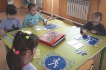 В детском саду созданы условия для организации работы по профилактике дорожно-транспортных происшествий. В группе организован уголок безопасности (макеты, дорожные знаки, дидактические игры, атрибуты для сюжетно-ролевых и строительных игр). Дети с удовольствием играют дидактические игры, собирают пазлы.
