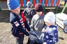 Санитар – экологик икеайлыкка старт бирелде. Балалар белән бик теләп бакча территориясен җыештырабыз.